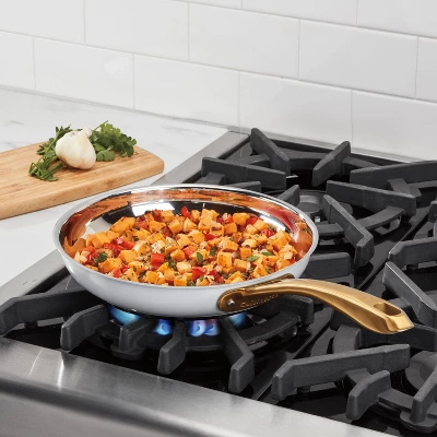 Ideal for making scrambled eggs, sauteing vegetables, slow braising meats, searing poultry, fish and more. Professional stainless steel offers optimal cooking performance. Powerbond high impact bonded base for even heating. Comfortable brushed gold stainless steel Cool Gripâ„¢ stick handle is contoured for a secure grip and designed to stay cool on the stovetop. Rim of cookware is tapered to make pouring clean and easy. Oven safe to 500ËšF. Cook on stovetop, in oven, or under broiler. Freezer safe for easy food storage. Dishwasher Safe. Lifetime Warranty.