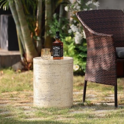 Look no further than this contemporary-style round side table for beauty and a minimalistic design. The beige and brown finish is purposefully distressed that blends with and complements a variety of color schemes and styles. Plus, it is small enough that it won’t overwhelm tight spaces. Perfect as a place for your plant to rest or an eye-catching end table for your indoor or outdoor ensemble. Featuring a pillar design, the round table is made with lightweight and high-quality magnesium oxide material and arrives ready to use. This contemporary piece is a seamless addition to any space, whether you add it to your patio furniture or place it next to your sofa.