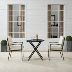 3pc Kaplan Outdoor Steel Bistro Set Oatmeal/Bronze – Crosley